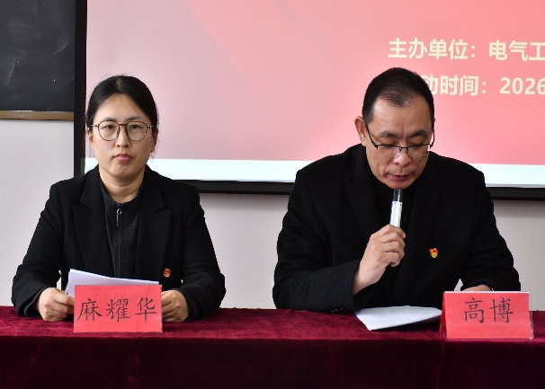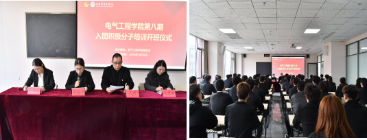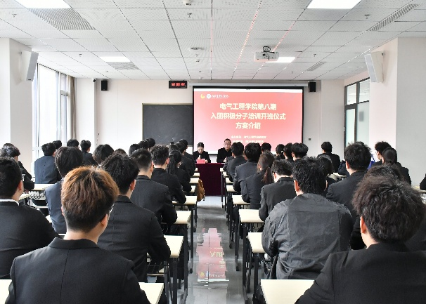 为加强团员队伍建设,规范团员发展工作,电气工程学院团总支于2026年3月30日下午在勤毅楼427教室举行第八期入团积极分子培训班开班仪式,旨在引导入团积极分子深入学习团的理论知识,传承红色基因。学院党总支书记、副院长高博,团总支书记麻耀华,学管干事任兰英、辅导员于晨、夏童童出席,全体入团积极分子参加。